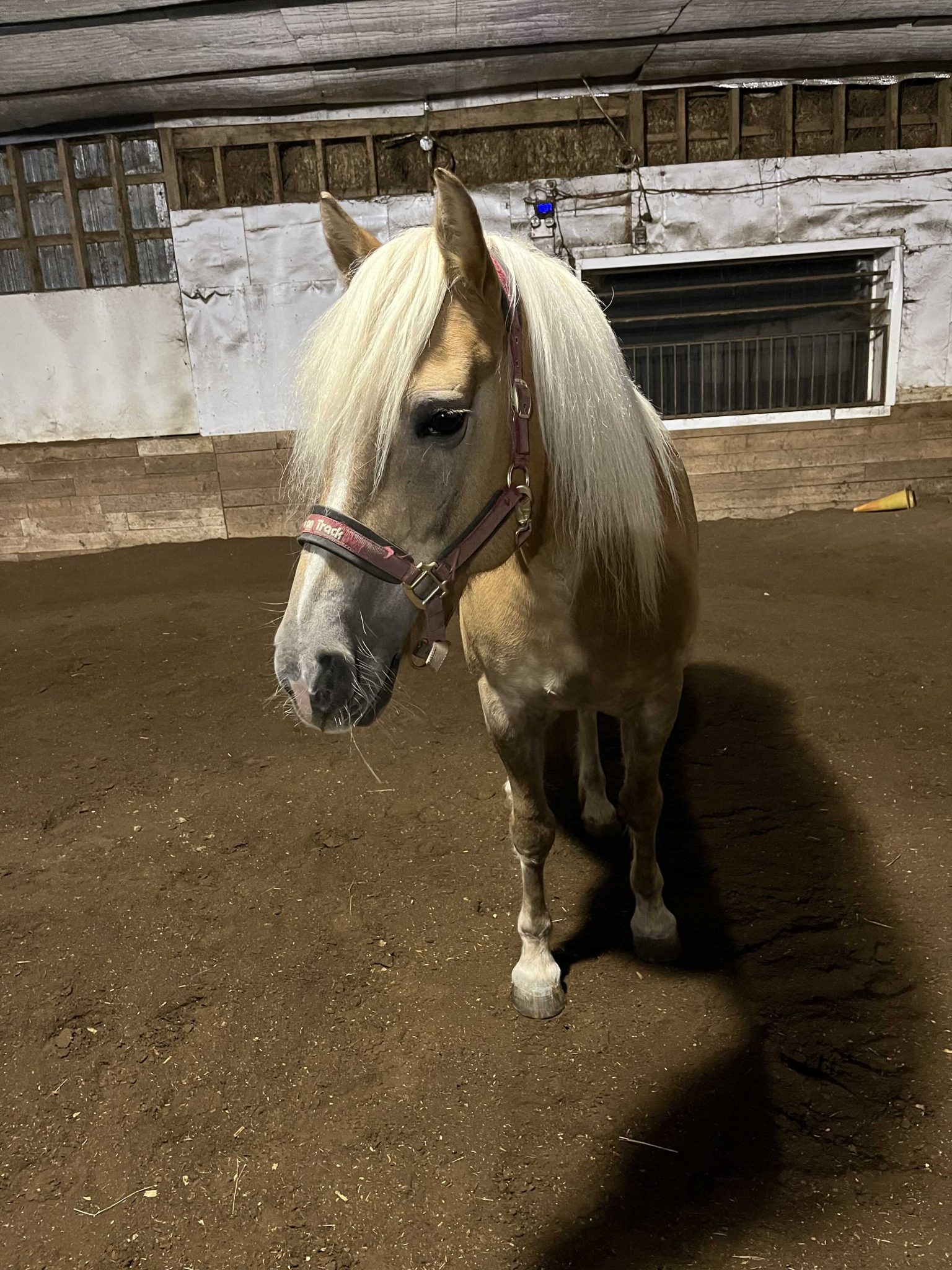 Haflinger de 17 ans de 14.1 main, pleine de personnalité et d’intelligence. Une jument expérimentée, curieuse et attachante, qui offre une belle complicité à celui qui saura apprécier son caractère affirmé.